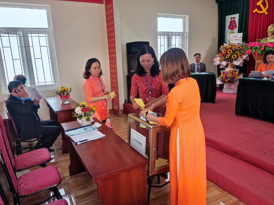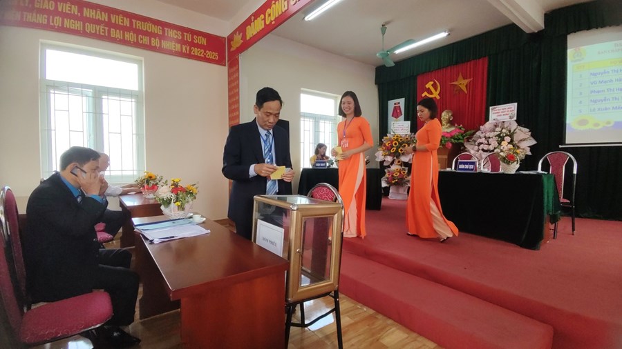 Đại hội tổ chức bầu cử ban chấp hành Công đoàn khoá 2023-2028. Với mong muốn đội ngũ ban chấp hành khoá mới sẽ thực hiện tốt hơn nhiệm vụ của nhiệm kì vừa qua, với tinh thần “Đổi mới, dân chủ, đoàn kết, phát triển”, CNVCLĐ đã bỏ phiếu tín nhiệm bầu ban chấp hành khoá mới và ban kiểm phiếu công tâm minh bạch. Đại hội đã bầu ra 05 đồng chí vào Ban chấp hành công trường nhiệm kỳ 2023 – 2028, bầu đoàn đại biểu dự Đại hội cấp trên. Trong đó đồng chí Lê Xuân Mến nguyên chủ tịch Công đoàn trường THCS Tú Sơn đã tái trúng cử vị trí Chủ tịch công đoàn nhà trường nhiệm kỳ 2023-2028.