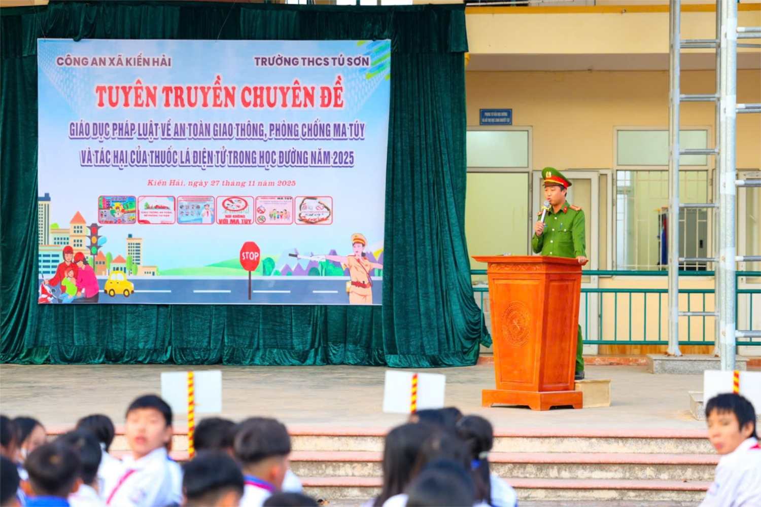 🍀Thực hiện nhiệm vụ năm học 2025-2026 và nhằm mục đích xây dựng một môi trường học đường an toàn, lành mạnh, nói không với tệ nạn xã hội; chiều ngày 27/11/2025, trường THCS Tú Sơn đã phối hợp cùng Công an xã Kiến Hải tổ chức thành công buổi Tuyên truyền chuyên đề Giáo dục pháp luật về An toàn giao thông, Phòng chống ma túy và Tác hại của thuốc lá điện tử.