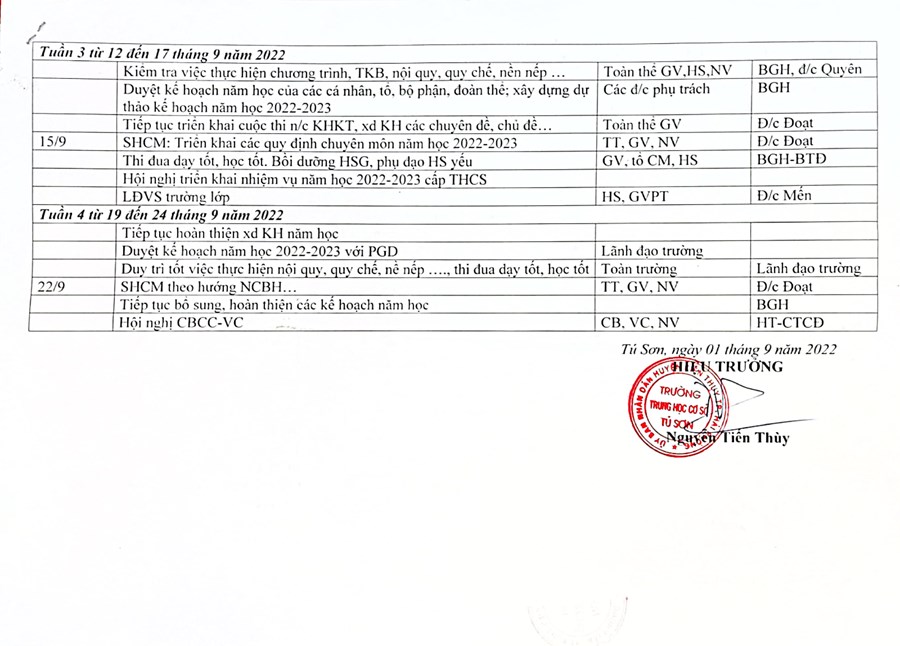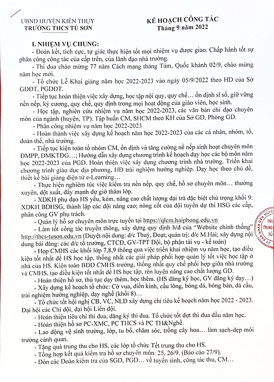 Kế hoạch tháng 9