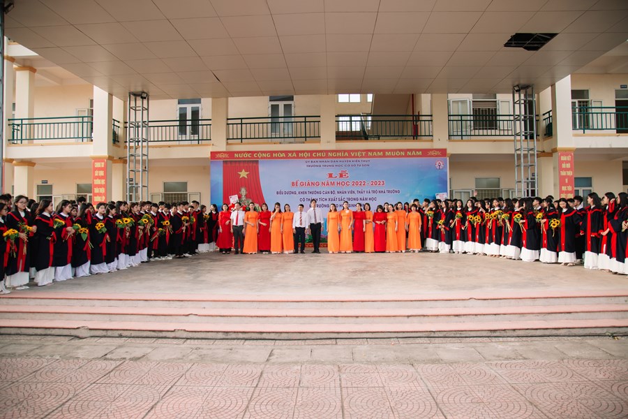 Mở đầu buổi lễ, Thầy giáo Nguyễn Tiến Thùy – Hiệu trưởng nhà trường đã khẳng định, năm học 2022 – 2023 là một năm học thành công nhưng cũng đầy thách thức đối với thầy và trò nhà trường. Dù vậy, nhà trường vẫn đạt được những thành tích xuất sắc trong công tác giáo dục và rèn luyện đạo đức học sinh; tiếp tục đổi mới toàn diện nội dung, phương pháp giảng dạy và hình thức kiểm tra đánh giá ở tất cả các môn học nhằm phát huy tính chủ động, sáng tạo của học sinh. Sau lời phát biểu đầy xúc động, thầy giáo Nguyễn Tiến Thùy đã tuyên bố bế giảng, kết thúc năm học 2022- 2023.