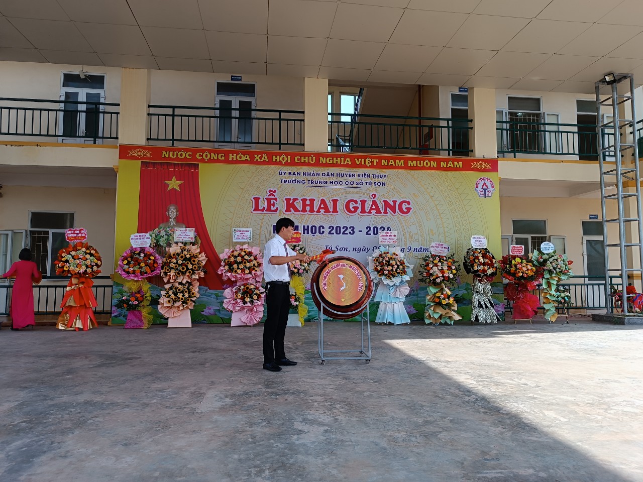 Trong diễn văn khai giảng năm học mới, thầy Hiệu trưởng đã biểu dương thành tích mà thầy và trò trường THCS Tú Sơn đã đạt được trong năm học vừa qua, và mong muốn trong năm học này, giáo viên và học sinh nhà trường sẽ giữ vững thành tích đã đạt được vượt qua khó khăn, thi đua dạy tốt - học tốt hoàn thành thắng lợi nhiệm vụ năm học 2023 - 2024.