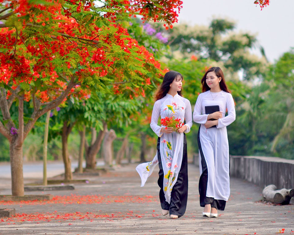 Tà áo trắng - cánh phượng hồng lã chã.